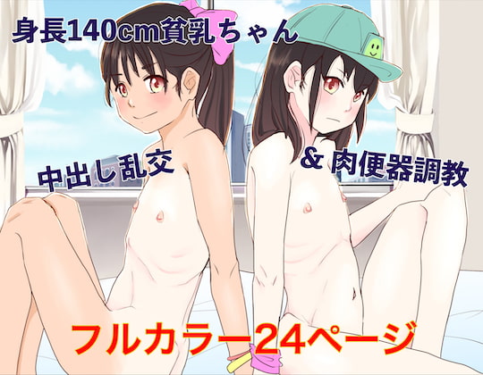身長140cmの貧乳ちゃんの中出し乱交&肉便器調教な作品です。
