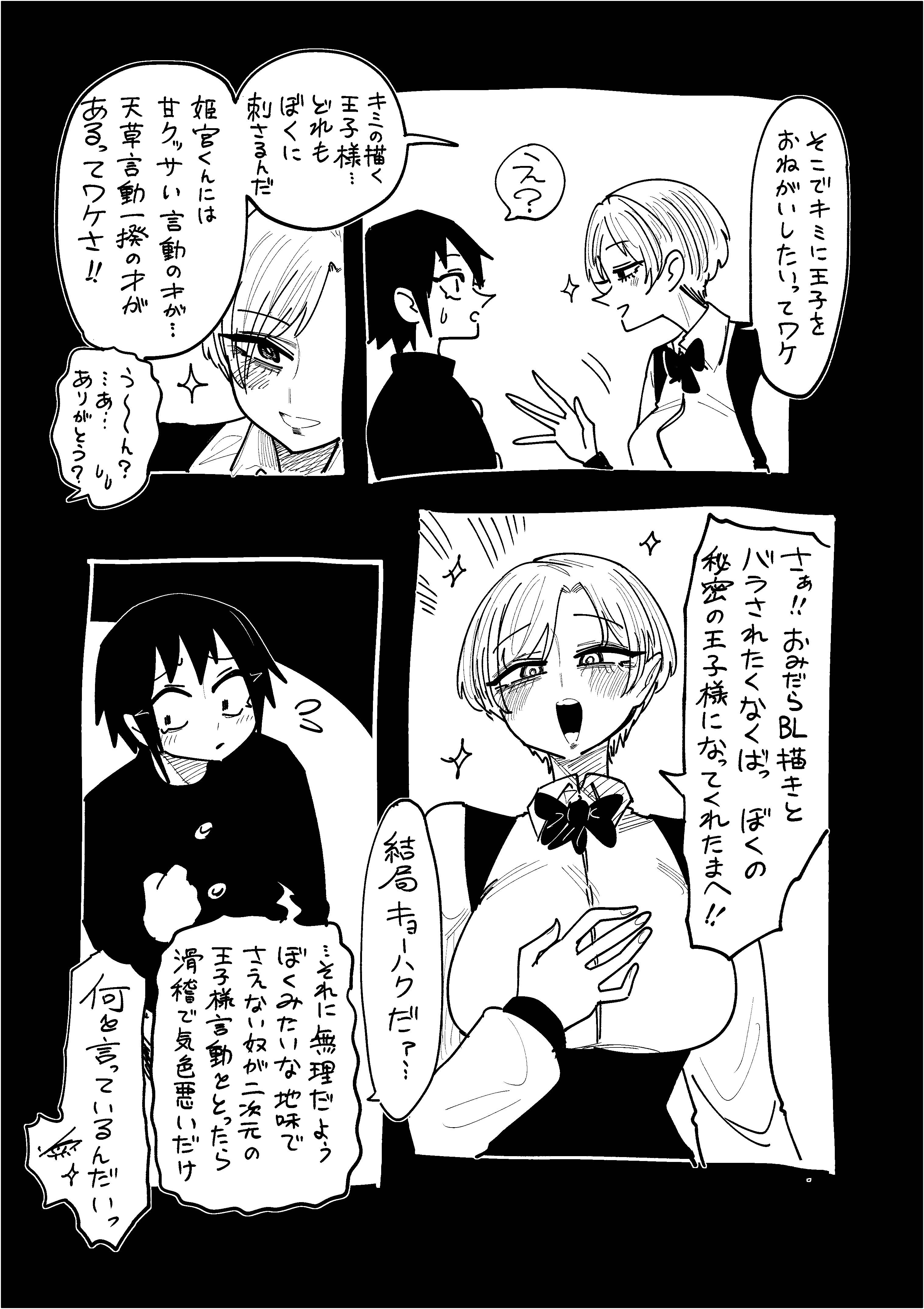 西大路は姫宮が趣味でBL漫画を執筆してネットで公開している秘密を突き止めていた。
