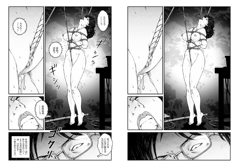 誘拐され○問部屋に連れ込まれた黒田夫妻。夫の目の前で清美は真っ先に哲夫にレ○プされます。そのうえで暫く咥える事すら拒絶していた夫のペニスを無理矢理にフェラをさせられる清美。果たして哲夫の目的とは?
