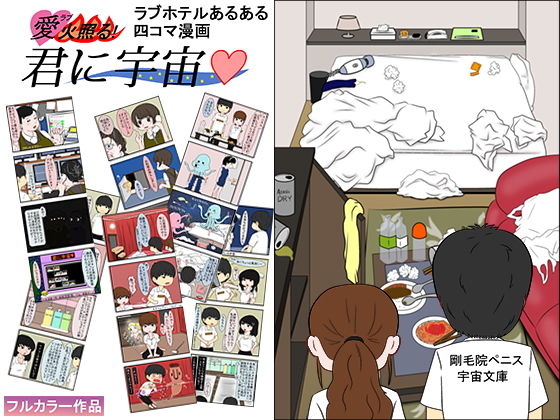 格安のラブホテルを舞台にした四コマ漫画。