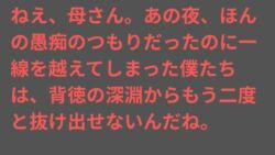 ノベル ねえ、母さん。あの夜、ほんの愚痴のつもりだったのに一線を越えてしまった僕たちは、背徳の深淵からもう二度と抜け出せないんだね。